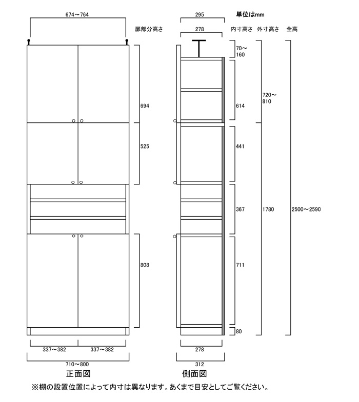 • ■外寸奥行31cm×高さ250~259cm×幅71~80cm(幅は1cm単位でオーダーできます)
