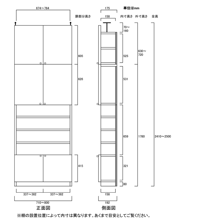 - ■外寸奥行19cm×高さ241~250cm×幅71~80cm(幅は1cm単位でオーダーできます)