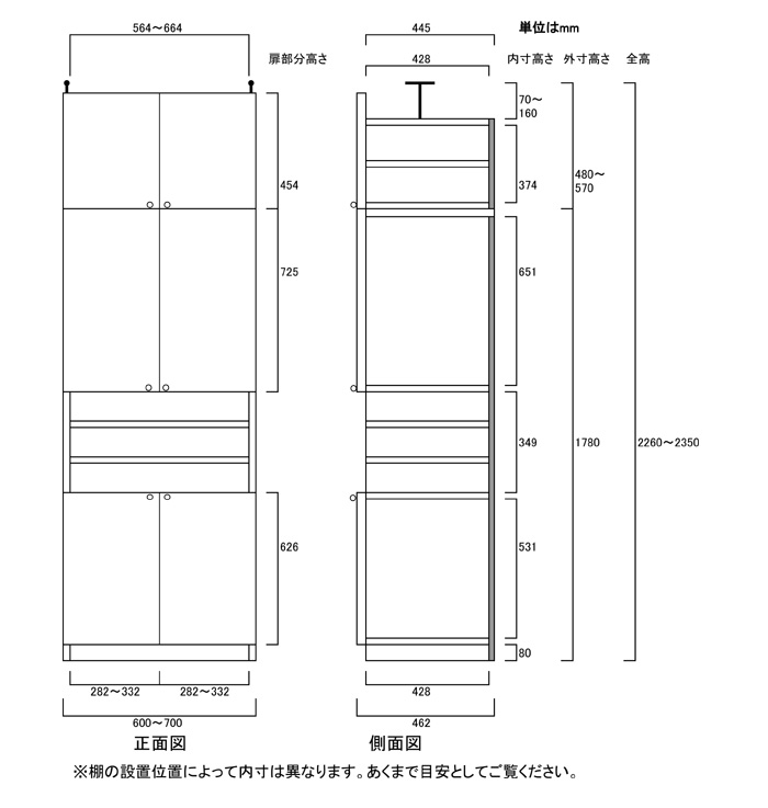 - ■外寸奥行46cm×高さ226~235cm×幅60~70cm(幅は1cm単位でオーダーできます)