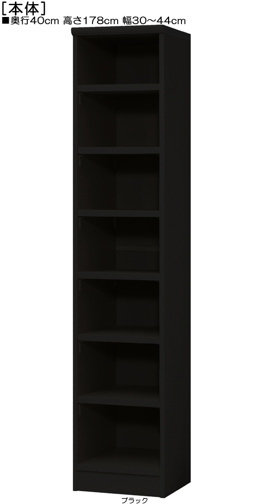 隙間収納 木製ラック 高さ178cm幅30〜44cm奥行40cm厚棚板(棚板厚み2.5cm) 寸法図 豊富なカラー 充実のオプション加工