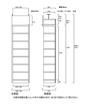 - ■外寸奥行31cm×高さ208~217cm×幅30~44cm(幅は1cm単位でオーダーできます)