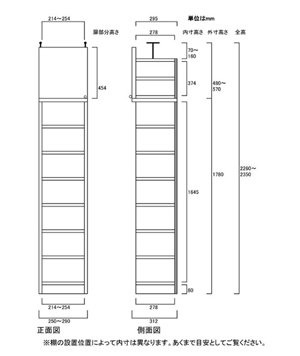 - ■外寸奥行31cm×高さ226~235cm×幅25~29cm(幅は1cm単位でオーダーできます)