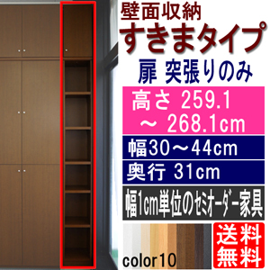 上扉付き 省スペース ぴったりすき間棚 奥行31cm×高さ259.1~268.1cm×幅30~44cm 商品詳細