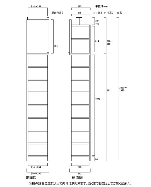 - ■外寸奥行31cm×高さ283.1~292.1cm×幅25~29cm(幅は1cm単位でオーダーできます)