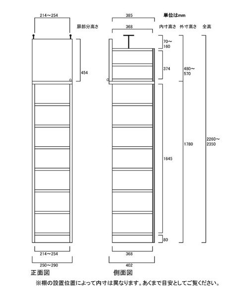 - ■外寸奥行40cm×高さ226~235cm×幅25~29cm(幅は1cm単位でオーダーできます)
