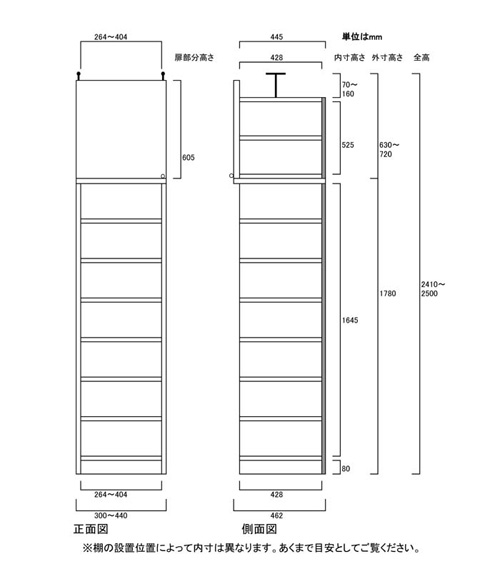• ■外寸奥行46cm×高さ241~250cm×幅30~44cm(幅は1cm単位でオーダーできます)