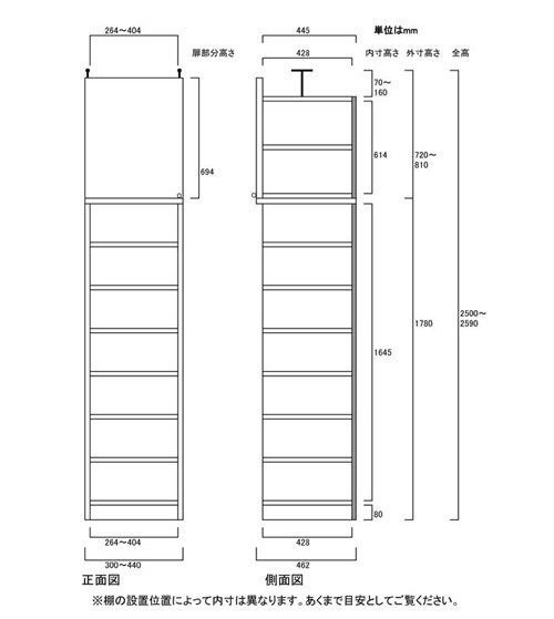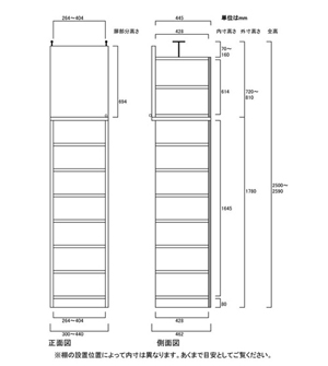 - ■外寸奥行46cm×高さ250~259cm×幅30~44cm(幅は1cm単位でオーダーできます)