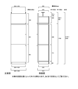 ■外寸 奥行31cm×高さ217~226cm×幅30~44cm(幅は1cm単位でオーダーできます)