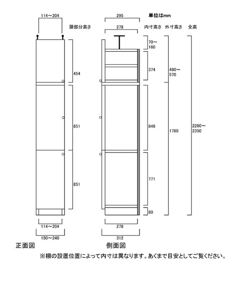 - ■外寸奥行31cm×高さ226~235cm×幅15~24cm(幅は1cm単位でオーダーできます)