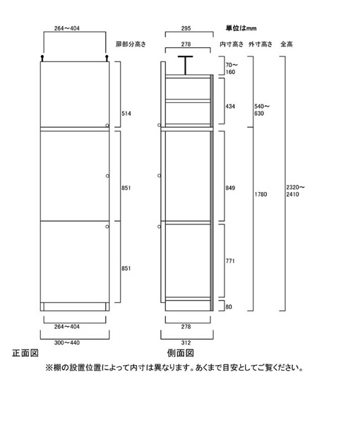 • ■外寸奥行31cm×高さ232~241cm×幅30~44cm(幅は1cm単位でオーダーできます)