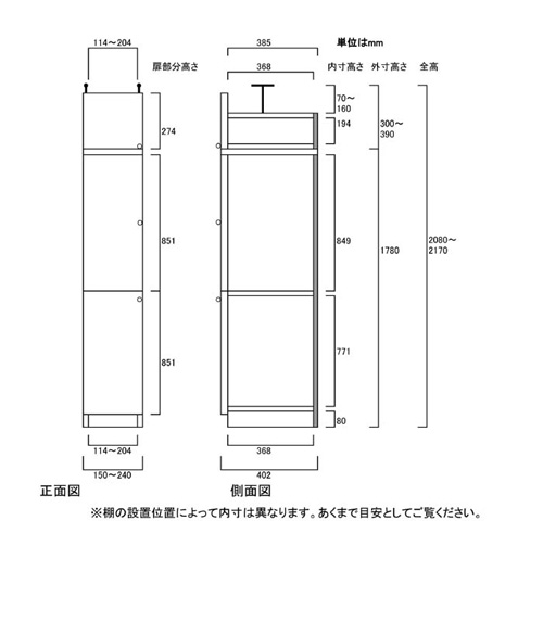 - ■外寸奥行40cm×高さ208~217cm×幅15~24cm(幅は1cm単位でオーダーできます)