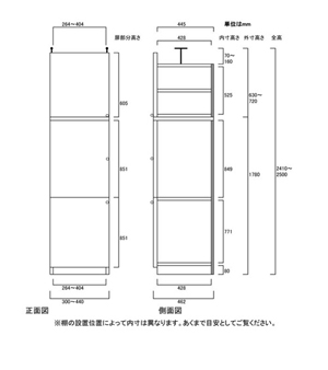 0H4J83M3 隙間収納 奥行46cm×高さ241~250cm×幅30~44cm オプション一覧