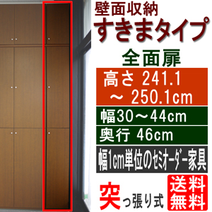 全面扉付き 省スペース オーダー木製棚 奥行46cm×高さ241.1~250.1cm×幅30~44cm 商品詳細