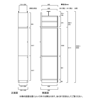 - ■外寸奥行46cm×高さ259.1~268.1cm×幅15~24cm(幅は1cm単位でオーダーできます)