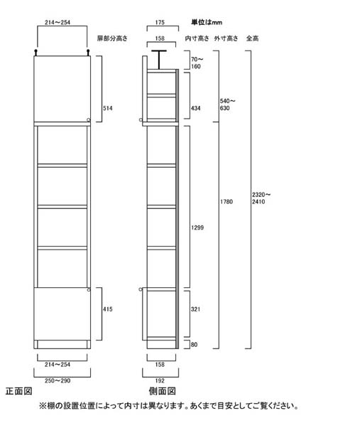 - ■外寸奥行19cm×高さ232~241cm×幅25~29cm(幅は1cm単位でオーダーできます)