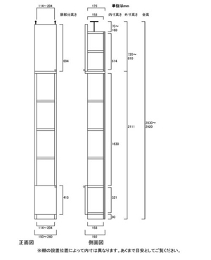- ■外寸奥行19cm×高さ283.1~292.1cm×幅15~24cm(幅は1cm単位でオーダーできます)
