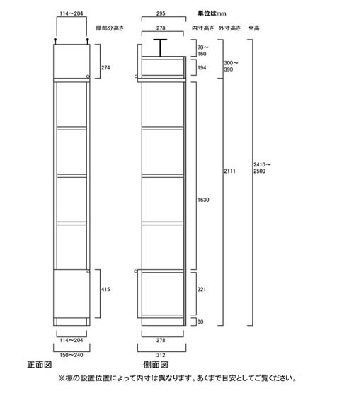 - ■外寸奥行31cm×高さ241.1~250.1cm×幅15~24cm(幅は1cm単位でオーダーできます)