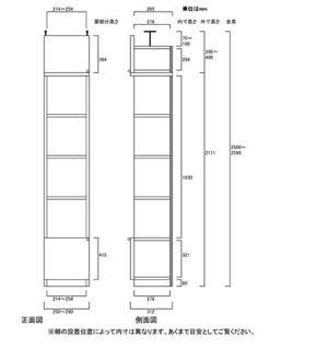 - ■外寸奥行31cm×高さ250.1~259.1cm×幅25~29cm(幅は1cm単位でオーダーできます)