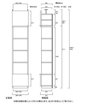 • ■外寸奥行31cm×高さ265.1~274.1cm×幅30~44cm(幅は1cm単位でオーダーできます)