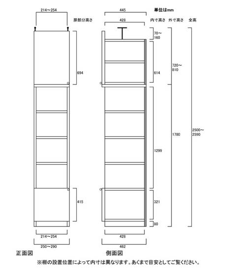 • ■外寸奥行46cm×高さ250~259cm×幅25~29cm(幅は1cm単位でオーダーできます)