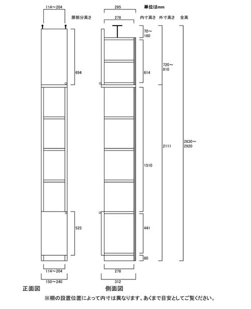 - ■外寸奥行31cm×高さ283.1~292.1cm×幅15~24cm(幅は1cm単位でオーダーできます)