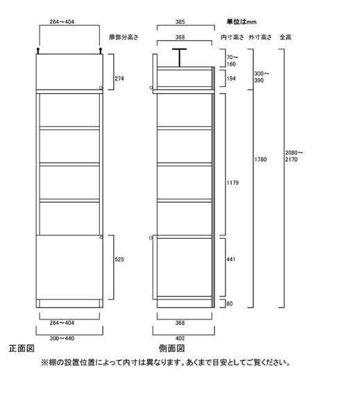 奥行40cm×高さ208~217cm×幅30~44cm