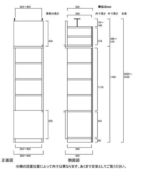 奥行40cm×高さ226~235cm×幅30~44cm