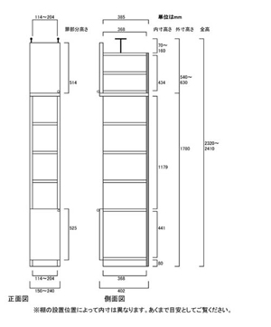 - ■外寸奥行40cm×高さ232~241cm×幅15~24cm(幅は1cm単位でオーダーできます)