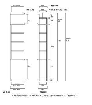 0H4S20I2 隙間収納 奥行19cm×高さ208~217cm×幅25~29cm オプション一覧