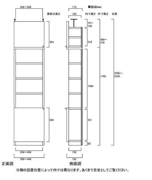 • ■外寸奥行19cm×高さ226~235cm×幅30~44cm(幅は1cm単位でオーダーできます)