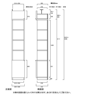 • ■外寸奥行31cm×高さ241.1~250.1cm×幅25~29cm(幅は1cm単位でオーダーできます)