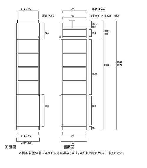 • ■外寸奥行40cm×高さ208~217cm×幅25~29cm(幅は1cm単位でオーダーできます)