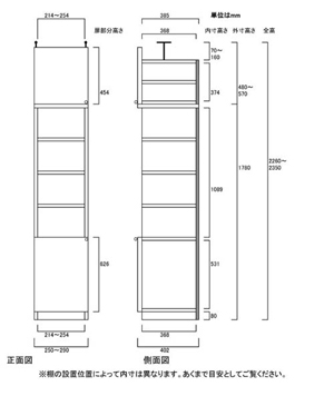 - ■外寸奥行40cm×高さ226~235cm×幅25~29cm(幅は1cm単位でオーダーできます)