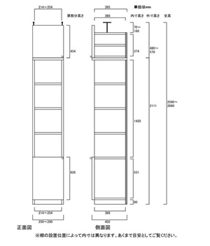 - ■外寸奥行40cm×高さ259.1~268.1cm×幅25~29cm(幅は1cm単位でオーダーできます)