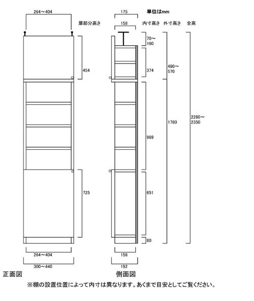 • ■外寸奥行19cm×高さ226~235cm×幅30~44cm(幅は1cm単位でオーダーできます)