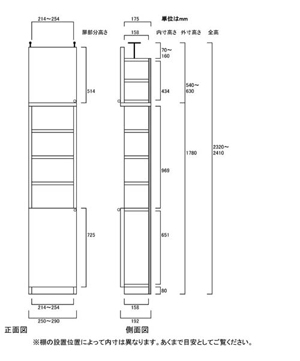 - ■外寸奥行19cm×高さ232~241cm×幅25~29cm(幅は1cm単位でオーダーできます)