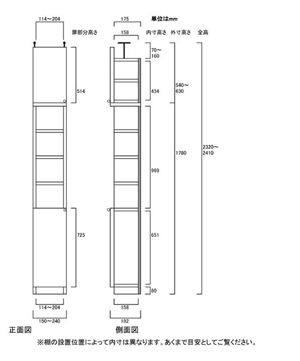 • ■外寸奥行19cm×高さ232~241cm×幅15~24cm(幅は1cm単位でオーダーできます)
