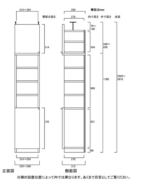 - ■外寸奥行31cm×高さ232~241cm×幅25~29cm(幅は1cm単位でオーダーできます)