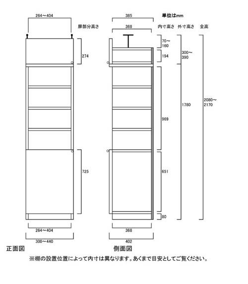 - ■外寸奥行40cm×高さ208~217cm×幅30~44cm(幅は1cm単位でオーダーできます)