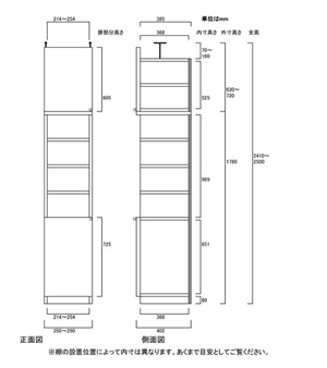 - ■外寸奥行40cm×高さ241~250cm×幅25~29cm(幅は1cm単位でオーダーできます)