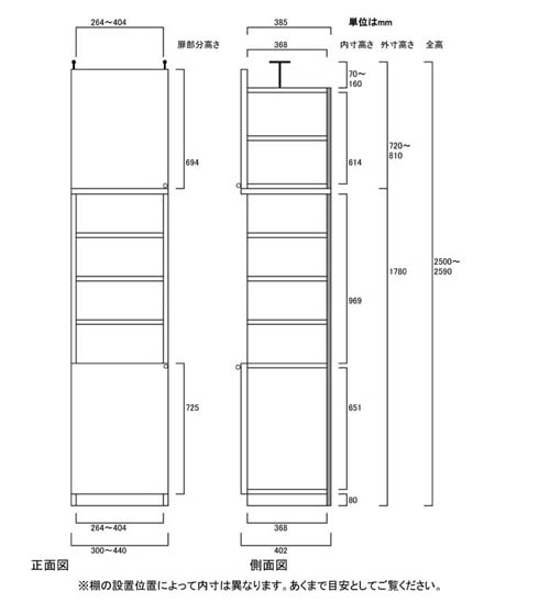 0H4S32NC 隙間収納 奥行40cm×高さ250~259cm×幅30~44cm オプション一覧