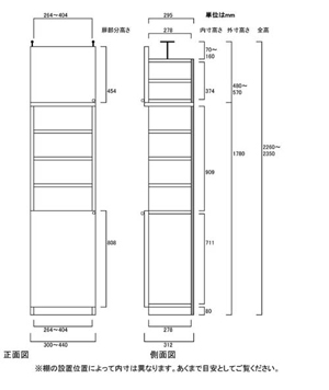 0H4S41KC 隙間収納 奥行31cm×高さ226~235cm×幅30~44cm オプション一覧