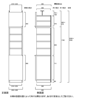 - ■外寸奥行40cm×高さ226~235cm×幅25~29cm(幅は1cm単位でオーダーできます)