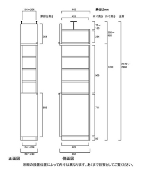 - ■外寸奥行46cm×高さ217~226cm×幅15~24cm(幅は1cm単位でオーダーできます)