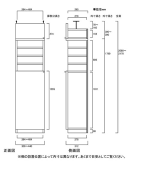 • ■外寸奥行31cm×高さ208~217cm×幅30~44cm(幅は1cm単位でオーダーできます)