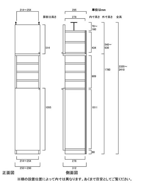 - ■外寸奥行31cm×高さ232~241cm×幅25~29cm(幅は1cm単位でオーダーできます)