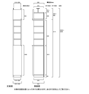 - ■外寸奥行31cm×高さ250.1~259.1cm×幅15~24cm(幅は1cm単位でオーダーできます)
