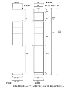- ■外寸奥行31cm×高さ259.1~268.1cm×幅25~29cm(幅は1cm単位でオーダーできます)