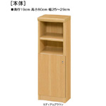 壁収納 扉付きロータイプ本棚 高さ80cm幅15〜24cm奥行19cm 商品番号 3TB00031 奥行19cm 高80cm 幅15〜24cm ノーマル棚板(棚板厚み1.7p) 価格 15100 円(税別)