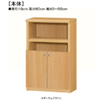 壁収納 扉付きロータイプ本棚 高さ80cm幅60〜70cm奥行19cm 商品番号 3TB00035 奥行19cm 高80cm 幅60〜70cm ノーマル棚板(棚板厚み1.7p) 価格 23280 円(税別)
